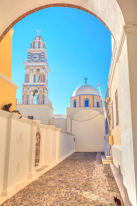 Santorini, a place of breathtaking views over the Aegean Sea, set amidst picturesque villages carved amidst clifftops, manifests an atmosphere of profound beauty and serenity.