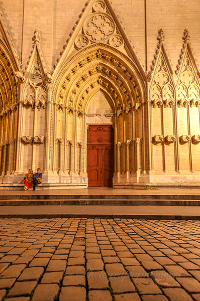 Crossing the busy road, I walked briefly up a narrow path before turning right. The transition was amazing to behold. An archaic cobblestone street opened up into a beautiful square. Ornate Renaissance buildings complete with antiquated wooden iron gilded doors plunged me into a bygone era. A beautiful fountain caught my attention. Moving slowly towards it, oblivious to the sounds around me I gazed at the depiction of “The Baptism of Christ by St. John the Baptist”. The solemnity and reverence in the statues expressions struck a chord in my heart. For long moments I gazed upon the figure of Christ, He whom I loved most and reflected on the most beautiful manifestation of sacrifice and pure love. Eventually I turned away and was greeted by a most beautiful facade. The cobblestone street gave way paying homage to a large archaic wooden door magnificently framed by multiple roman arches, a reminder of Lyon’s glorious past.