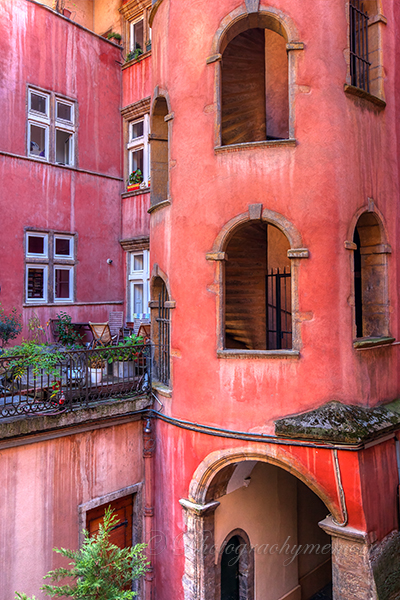 In the traboules of Vieux Lyon, La tour Rose manifests its archaic but defiant beauty
